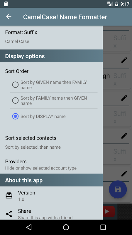 Carian app melalui semua kenalan anda, maka format mereka mengikut tetapan pilihan. Secara lalai, ia akan menukar nama semua kenalan anda ke dalam "Camel kes Format" (Watak pertama adalah dipermodalkan, diikuti dengan kes yang lebih rendah untuk sepanjang nama).