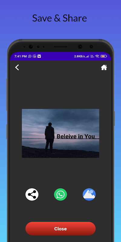 * Simpan hasil akhir anda ke galeri anda, sebagai kertas dinding