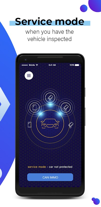Aplikasi CAN IMMO berjalan di latar belakang sehingga anda menutupnya atau mematikan fungsi aplikasi. Anda bahkan tidak perlu mengeluarkan telefon dari poket anda, yang perlu anda lakukan hanyalah mendekati kenderaan anda dan alat imobilisasi akan menyambung ke telefon anda dan membuka kunci kereta secara automatik.