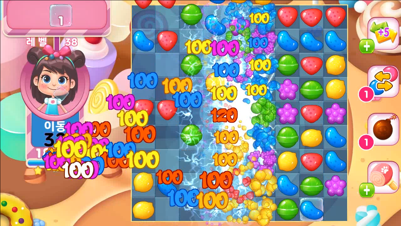 ▷ Jika anda memadankan 5 gula-gula dengan warna yang sama berturut-turut, anda boleh mencipta gula-gula berbilang warna dengan kesan yang hebat