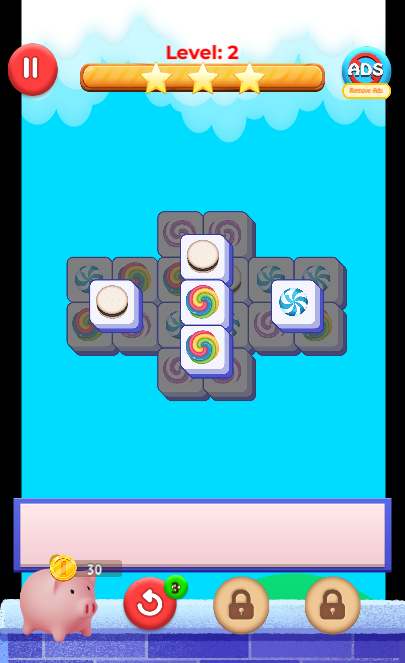 🧩 Padankan 3 jubin yang sama. Hanya ketik untuk meletakkannya ke dalam timbunan. Anda sedang mencari padanan tiga kali ganda, contohnya, tiga strawberi 🍭+🍭+🍭