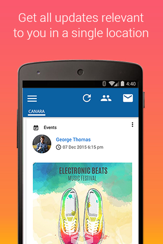 In today’s life one needs to be networked and connected with as many people as possible. The Canara Engineering College CANLIVE Alumni Connect App is the best way to stay connected actively within a community, the app features searchable access to the alumni directory and a "nearby" function for mapping alumni by business address at any location in the world. No matter where you live, you can use the CANARA Alumni Connect App to connect with your formmates, network with CANARA Alumni and keep up to date with the latest CANARA FAMILY and alumni news.