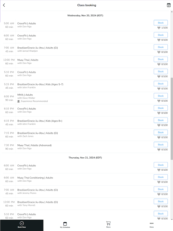 Muat turun apl untuk melihat jadual & sesi buku di Capital MMA & EliteFitness
