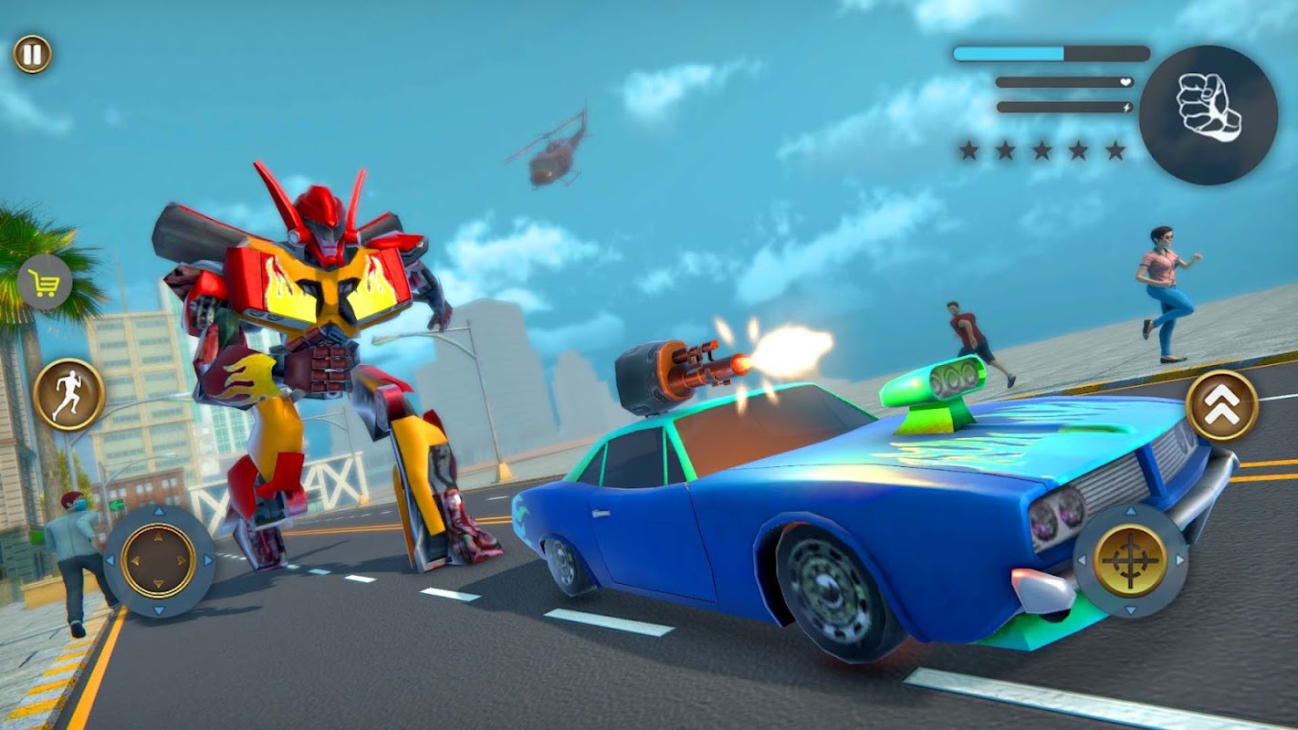 Flying Jet robot car transforming game is an endless car robot city battle that enfolds the furious robot car between bike robot, car robot, truck robot, tank robot, helicopter robot and firefighter robot of the real car robot shooting games & this car robot transforming game brings up an exclusive evolution in robot shooting games and Incredible robot transforming games with many vehicles transformations and animations.