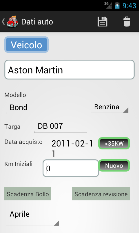 CarDroid3 ti aiuta a ricordare le principali scadenze relative al tuo veicolo come :