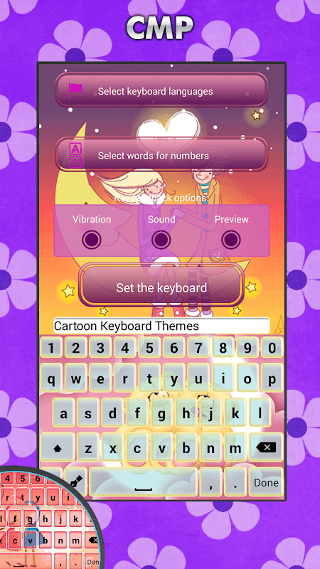 2. Kembali ke permohonan itu, kemudian pilih 'Sediakan papan kekunci untuk Default' butang dan pilih 'Kartun Papan Kekunci Tema'