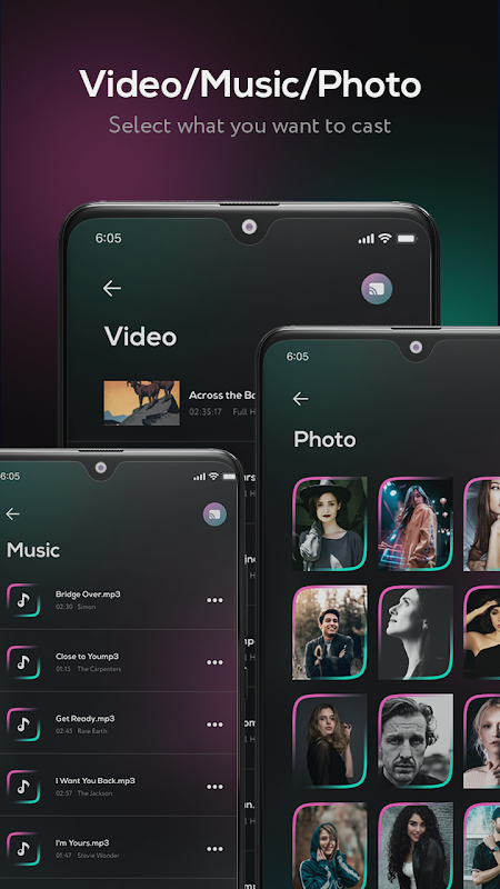 • anda boleh menghantar sebarang muzik, video atau foto dengan mudah daripada peranti anda pada tv anda dengan menggunakan aplikasi pencerminan skrin xcast ini.