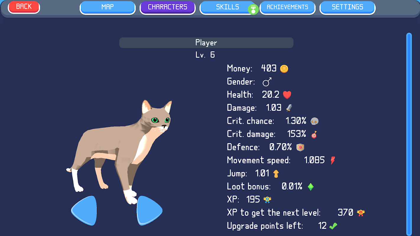 💪 Tingkatkan kemahiran watak anda. Kucing anda memulakan permainan sebagai anak kucing kecil dan tidak tahu bagaimana untuk mempertahankan dirinya. Pergi dengannya dari anak kucing kepada watak dewasa.