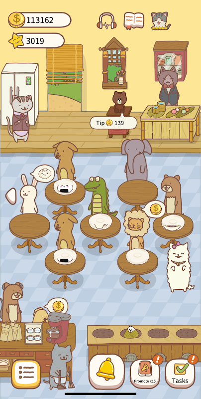 Promosikan restoran anda di hutan, biarkan lebih banyak binatang datang untuk makan, layan binatang itu sebanyak mungkin dalam permainan, anda boleh mendapatkan duit syiling emas. Gunakan dapur canggih untuk mempercepat memasak untuk mencari sebanyak mungkin pelanggan haiwan.