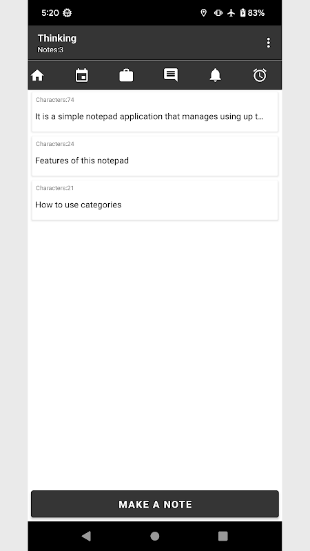 Aplikasi ini merupakan alat nota yang direka untuk mengatur dan mengurus nota mengikut kategori.