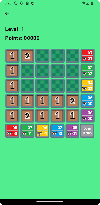 Kemajuan anda dijejaki mengikut tahap dan mata, dengan setiap peringkat mempersembahkan grid kad baharu untuk menavigasi dengan lebih banyak mata untuk diperolehi semakin tinggi tahap itu.
