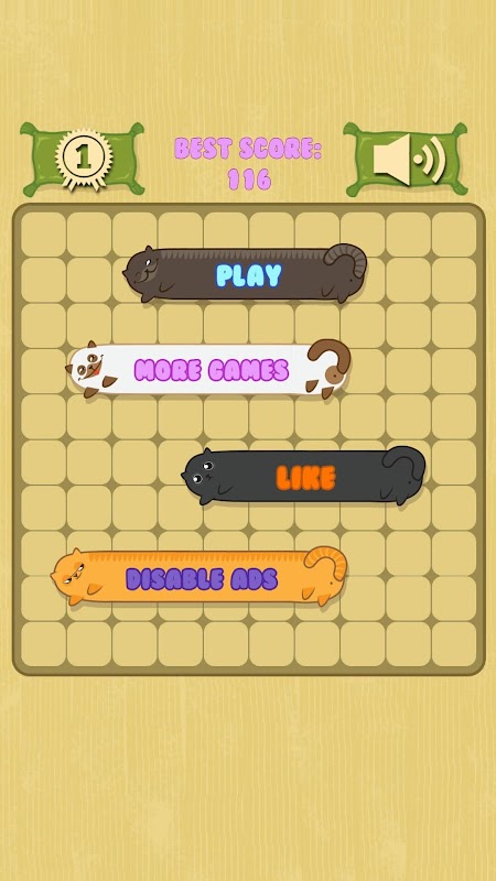 New game Cats Block Puzzle with exciting game modes, where you need to break and clear the playing field, find the fairy lights to add yourself twists! The cat game itself is very simple you have to drag the cats figures on the playing field, and to fill in the line horizontally or vertically to clear the field and earn points. You can play cats game for FREE!