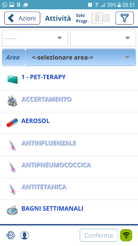 Applicazione di data entry parametri sanitari, rilevazione attività utente e somministrazione terapie.