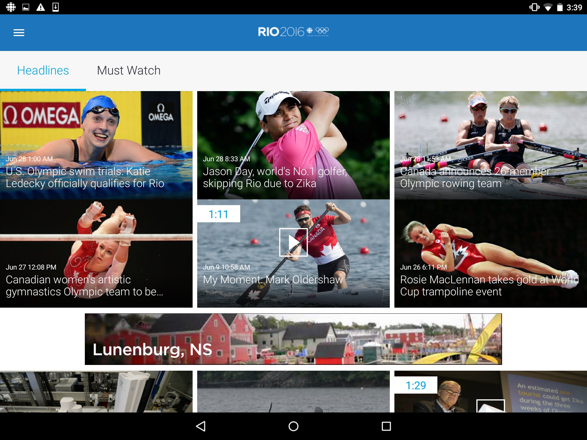 Watch live video, on-demand highlights, and get the latest results with the new CBC Rio 2016 app for Android. Follow Team Canada’s quest for the podium from Aug. 5-21, and watch live as the biggest international stars such as Usain Bolt and Michael Phelps continue their historic journey.