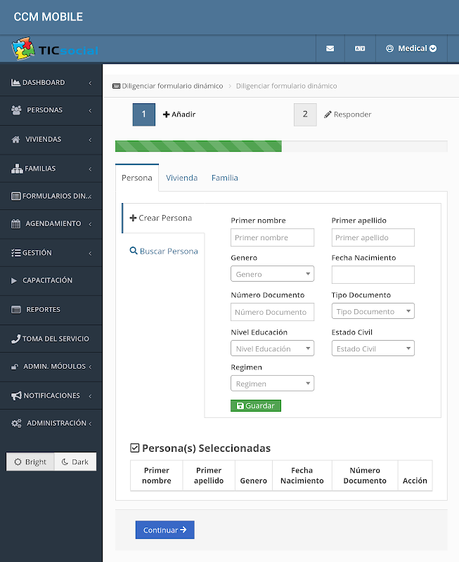 * Redireccionamiento al menú de formularios al finalizar la encuesta.