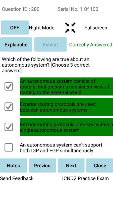 Application contains 250+ practice questions from all objectives of ICND2 Cert.