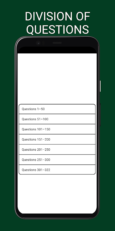Aplikasi ini termasuk 70 soalan dalam percubaan percuma dan 322 soalan dalam akses penuh dengan jawapan!