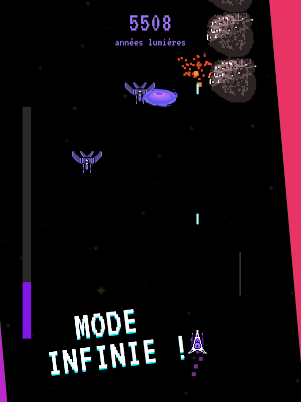 - Combattez les boss et éviter les pluies d'astéroïdes.