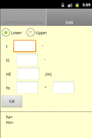 This calculator calculate the ha and Ho values of Jupiter . Saturn .Sun and Star