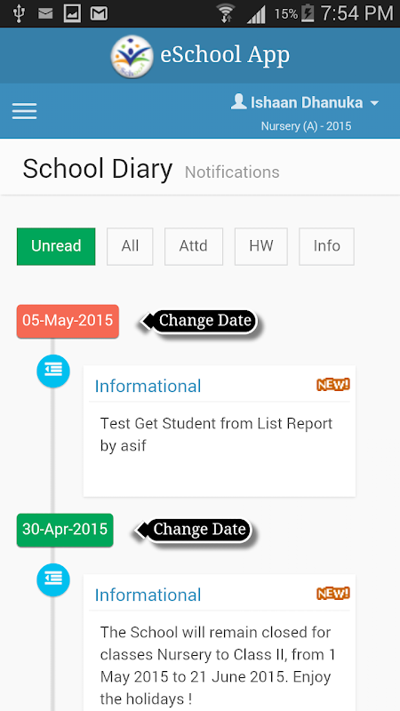4. Diari Sekolah - Sekarang hantar lampiran pdf dan imej dengan pekeliling untuk dihantar melalui Aplikasi. Pandangan garis masa lengkap maklumat, kerja rumah, yuran, maklumat berkaitan keputusan dihantar oleh sekolah secara berkala!