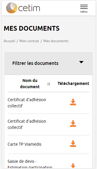 L’Application Cetim, permet d’accéder 7j/7, 24h/24, à votre Espace Assuré et à toutes ses fonctionnalités sur mobile et tablette !