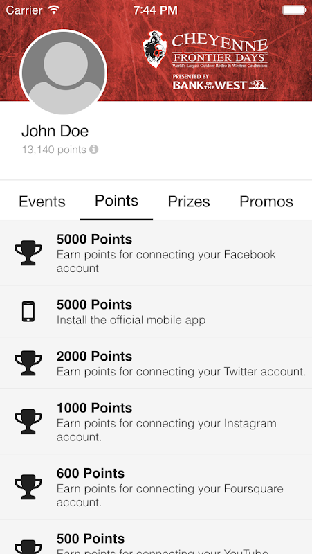 - See upcoming events that you can attend for points