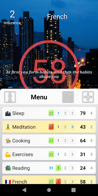 ☑️ If on the previous day you forgot to mark the results of the habits, these habits will not automatically be considered as missed. You will be able to mark the results the next time you launch the application!