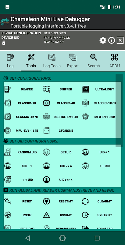 antara muka pembalakan interaktif untuk papan kad emulator Chameleon Mini NFC.