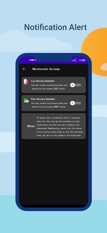 Meter Pengecas menampilkan antara muka yang anggun dan mesra pengguna, menjadikannya mudah untuk difahami dan dinavigasi. Apl ini juga termasuk makluman dan pemberitahuan yang boleh disesuaikan, jadi anda tidak perlu risau tentang bateri anda kehabisan semula.