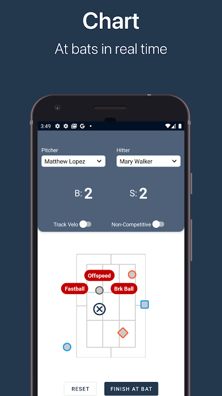 Charts Analytics is a user controlled pitch tracking application that allows the user to store and analyze pitch analytics in real time.