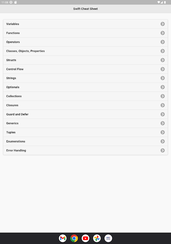 Apabila belajar bahasa, ia berguna untuk mempunyai lembaran cheat kerana anda mula terbiasa dengan sintaks. Swift Cheat Sheet App di sini bagi anda untuk melihat dengan cepat sintaks yang anda berminat untuk kod. Ia meringkaskan sintaks Swift yang paling penting pada satu aplikasi untuk membuat anda cepat mempercepatkan.