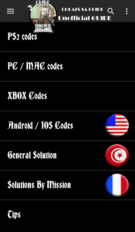 Cheats For SA (Unofficial Guide) is a very simple and reliable application that contains the best codes and tips for SA.