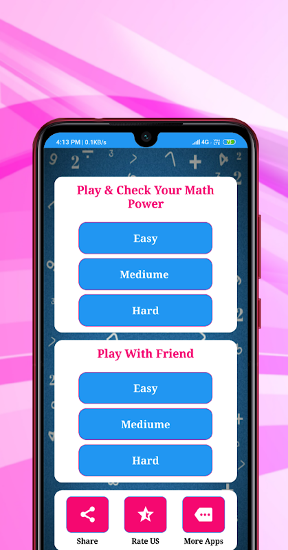 Using this application to play game and check math power and also challenge your friends to check who math power is strong.