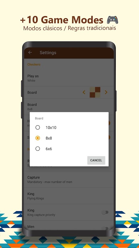 This Checkers game also calling : Damas, Dama, Draughts ...