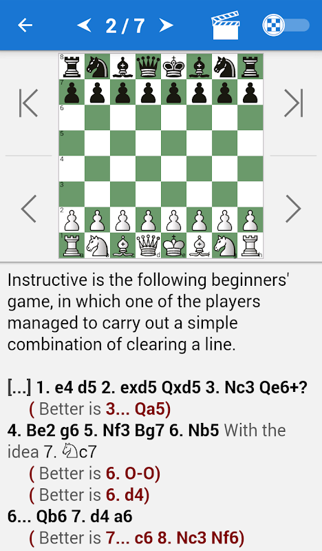 ♔ Nasihat atau sanggahan diperlihatkan ketika Anda melakukan gerakan keliru yang sering dilakukan orang