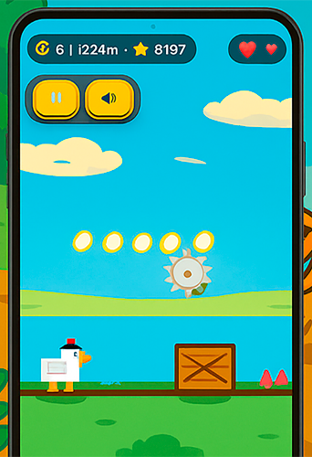 Setiap peringkat adalah cerita baru, cabaran baru. Selami dunia di mana seekor ayam pun boleh menjadi wira! Berapa meter anda boleh berlari? Berapa banyak hati yang boleh anda simpan? Dan yang paling penting, berapa banyak telur yang boleh anda kumpulkan sebelum pancang terakhir "menangkap" anda?
