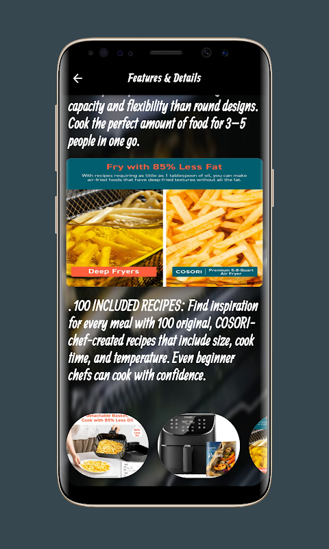 Aplikasi Panduan Ketuhar Udara COSORI mengandungi banyak maklumat dan ciri-ciri Ketuhar Penggorengan Udara COSORI, yang boleh anda dapatkan dengan jelas dan mudah. Melalui aplikasi Panduan Ketuhar Penggorengan Udara COSORI, anda boleh menonton video Ketuhar Penggorengan Udara COSORI, yang membolehkan Kenali rupa dan rasa Panduan Ketuhar Penggorengan Udara COSORI dan pelbagai cirinya termasuk memasak tanpa tekanan: Temui Pro 5.8-Quart Air Fryer, alat yang sangat cekap yang memberikan rasa goreng yang sihat di atas kerja anda