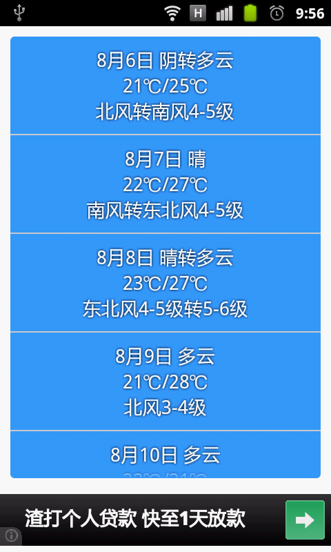 此应用支持中国各省各市各县的天气预报, 支持各种手机分辨率, 平板支持800X1280分辨率, 这是一款简介的天气预报软件, 用户操作相当简单!