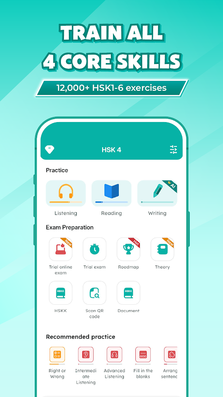 Berlatih seperti peperiksaan HSK sebenar dan jejaki peningkatan anda dengan aplikasi bahasa Cina ini.