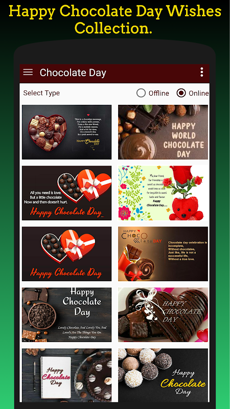 💕 It has a huge collection of chocolate day wishes. it's say is to happy chocolate day by using this app.🍫