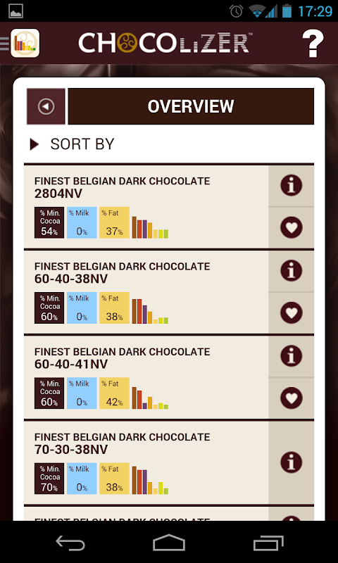 Adakah coklat yang rasa lebih sengit dan mendedahkan lebih banyak wang kertas bunga daripada yang anda telah menggunakan kerap? Bolehkah anda berpasangan coklat anda dengan bir? Berhenti tertanya-tanya dan meneroka Callebaut ® Chocolizer ™. Ini alat interaktif membolehkan anda untuk mengarang dan lagu rasa coklat kegemaran anda untuk gelap, susu dan putih coklat. Aplikasi ini akan mencadangkan yang coklat Callebaut ® sesuai terbaik dengan rasa pilihan anda.