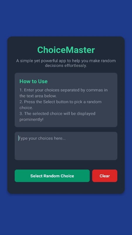 Apl ringkas namun berkuasa untuk membantu anda membuat keputusan rawak dengan mudah.