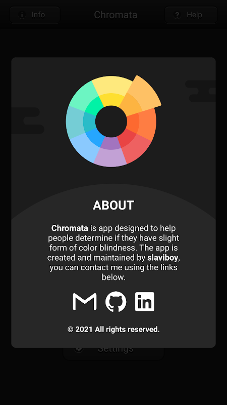 Chromata adalah aplikasi android PERCUMA yang direka untuk membantu orang menentukan sama ada mereka mempunyai sedikit buta warna.