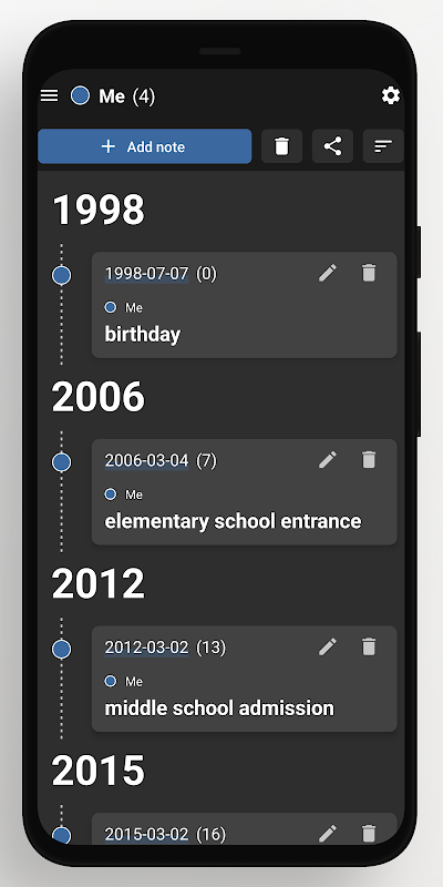 Ini adalah sebuah aplikasi yang memungkinkan Anda untuk menulis catatan kronologis (memoar, otobiografi, sejarah pribadi, cerita saya).