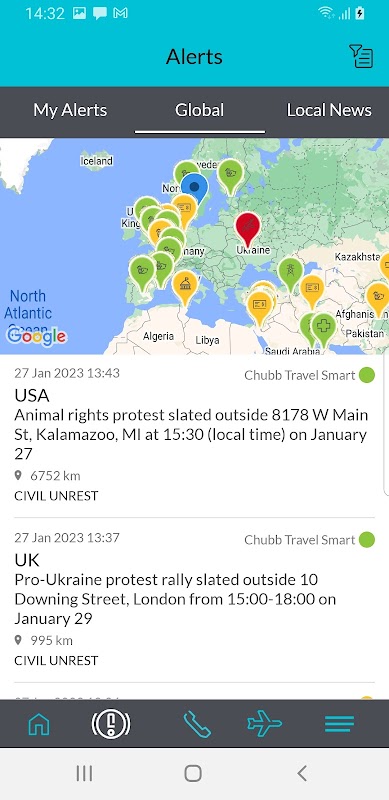 Versi terkini Chubb Travel Smart menggunakan teknologi pertambangan maklumat teknologi untuk membolehkan pengenalan dan komunikasi yang berpotensi berisiko berdasarkan lokasi atau destinasi yang dirancang. Ia mengagregatkan dan menapis maklumat dari ribuan sumber yang berbeza di seluruh dunia, termasuk media berita, institusi kerajaan, pangkalan data keselamatan dan kesihatan dan media sosial. Semua maklumat dikaji semula dan dikawal 24/7 oleh pasukan pakar untuk memastikan makluman yang tepat dan tepat pada masanya ditolak kepada anda, membantu anda untuk kekal selamat dan mengelakkan masalah.