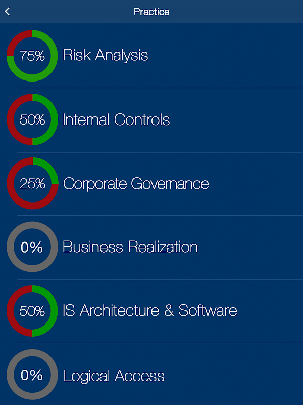 CISA peperiksaan prep app akan membantu anda mendapatkan maklumat yang akan membantu anda lulus ujian CISA dengan mudah.