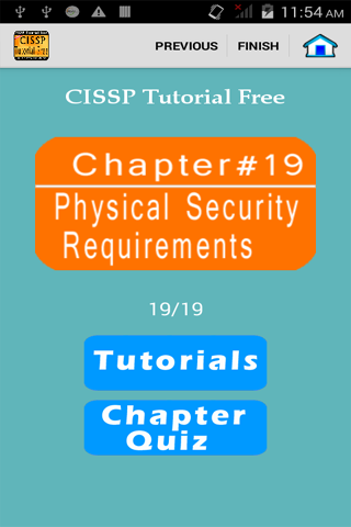 CISSP Tutorial free app provides training with 19 chapters and quiz questions