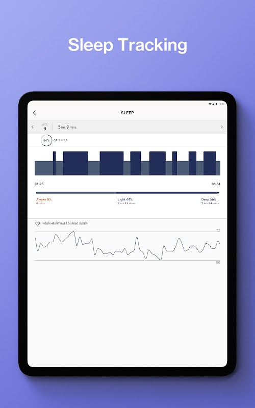 Gandingan dan persediaan mudah dengan telefon pintar dan serasi dengan Android. Apl ini mengimbas semula aktiviti anda termasuk langkah, tidur, senaman, kalori dan kadar denyutan jantung.