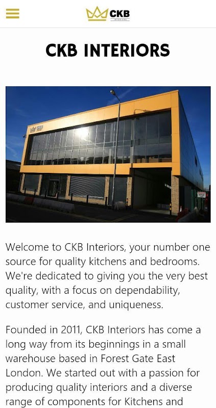 Founded in 2011, CKB Interiors has come a long way from its beginnings in a small warehouse based in Forest Gate East London. We started out with a passion for producing quality interiors and a diverse range of components for Kitchens and Bedrooms
