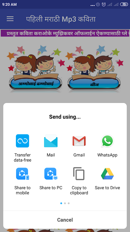 Semua puisi dalam buku teks Marathi kelas Satu telah dirakam dalam suara saya. Terdapat juga muzik yang sesuai.